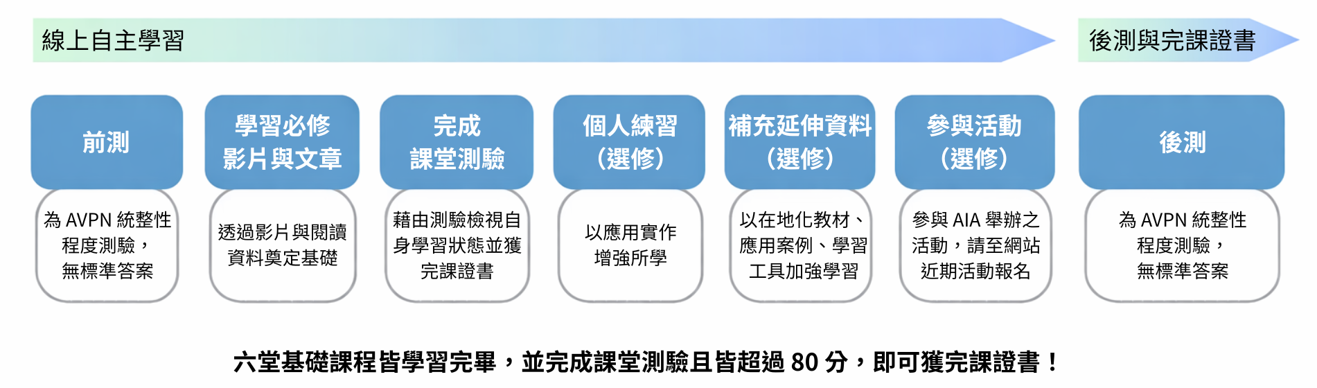 只要閱讀教材與觀看影片,並完成課程測驗,