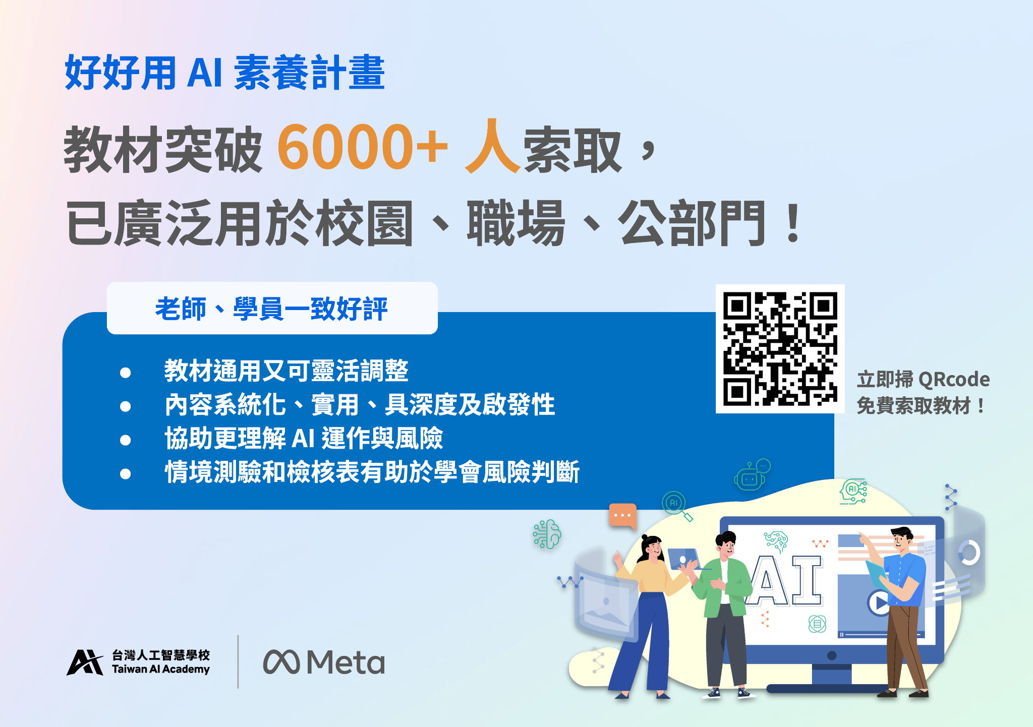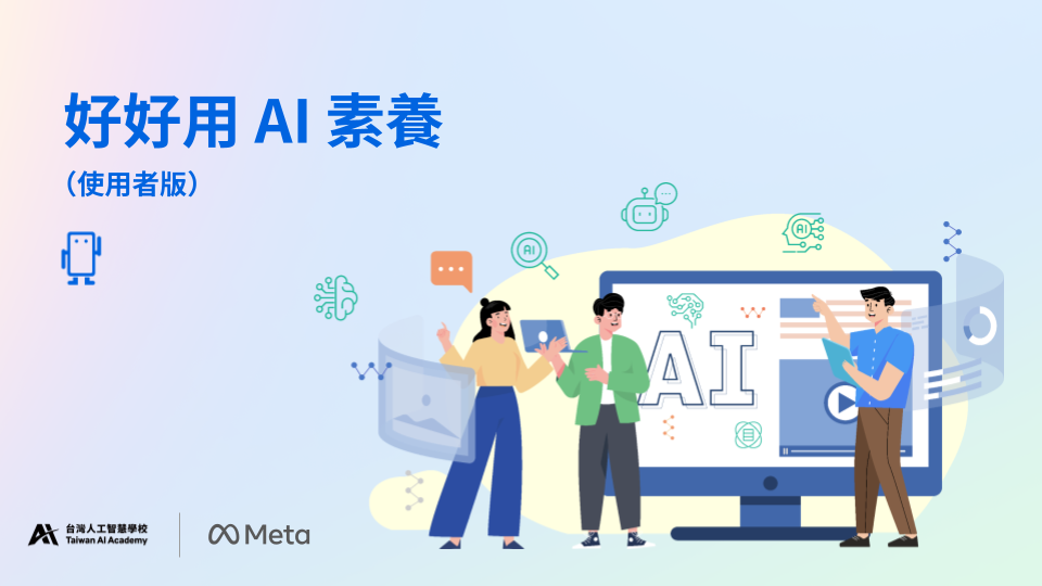 【好好用 AI】負責任使用與開發 AI 素養計劃提供台灣第一套針對 AI 使用風險的教材,由台灣人工智慧學校與 Meta 共同發起,